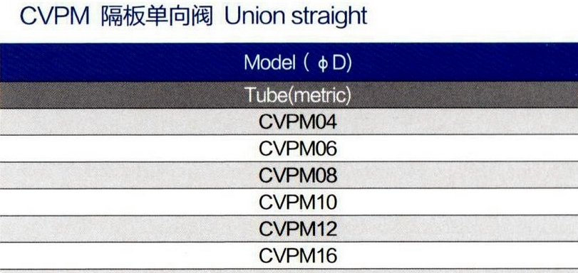 CVPM04,CVPM06,CVPM08,CVPM10,CVPM12,CVPM16,隔板單向閥