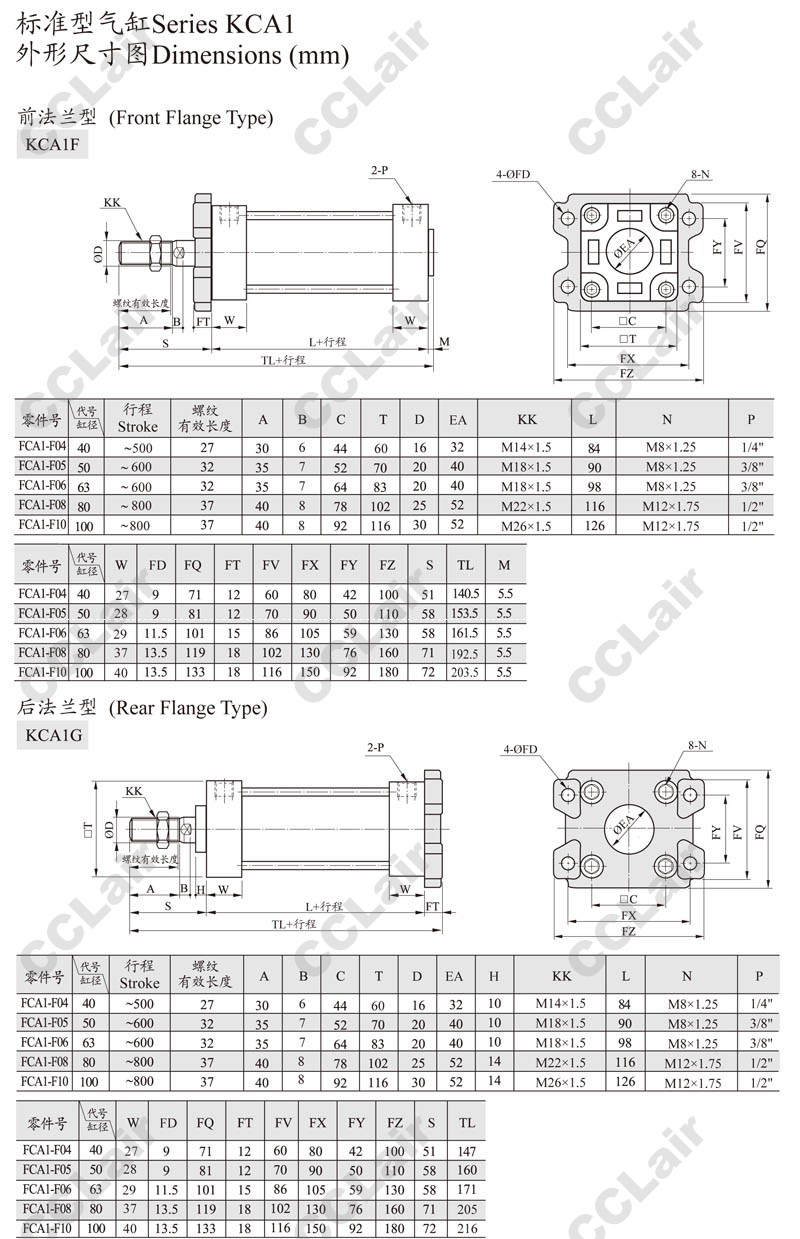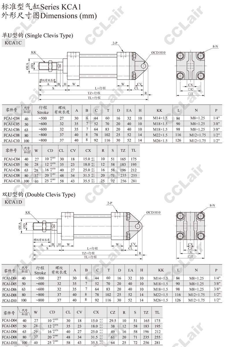 KCA1C40-25,KCA1C40-50,KCA1C40-75,KCA1C40-100,KCA1C40-125,CCLair KCA1C40-150,KCA1C40-175,KCA1G80-175,