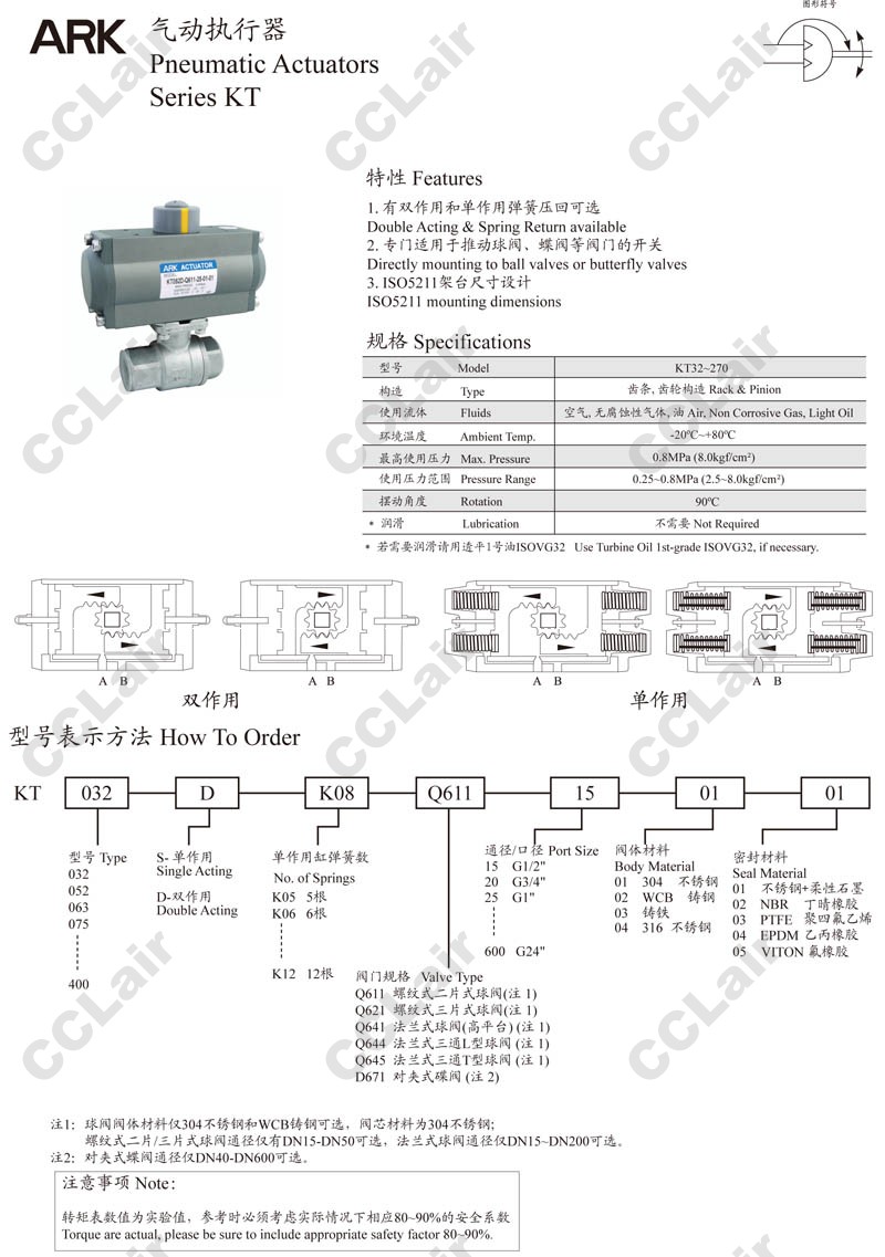 KT032,KT052,KT063,KT075,KT083,KT092,KT105,KT125,KT140,KT160,KT190,KT210,KT240,ARK氣動(dòng)執(zhí)行器