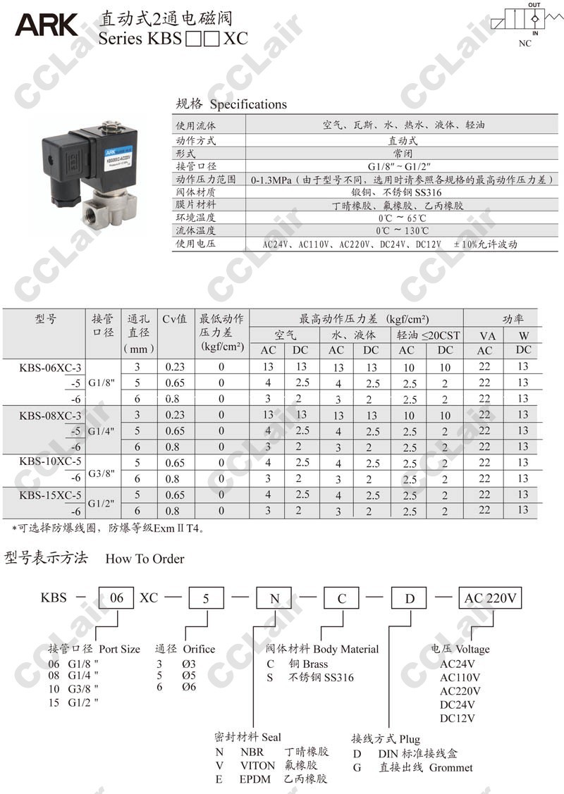 詳細(xì)信息 KBS-06XC,KBS-08XC,KBS-10XC,KBS-15XC,KBS-06XC-3,KBS-08XC-6,KBS-15XC-6,ARK直動(dòng)式2通電磁閥