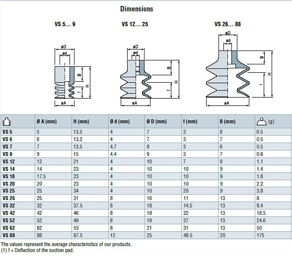 詳細(xì)信息 VS5,VS6,VS7,VS9,VS12,VS14,VS18,VS20,VS25,VS26,VS32,VS42,VS52,VS62,VS88,COVAL波紋管吸盤