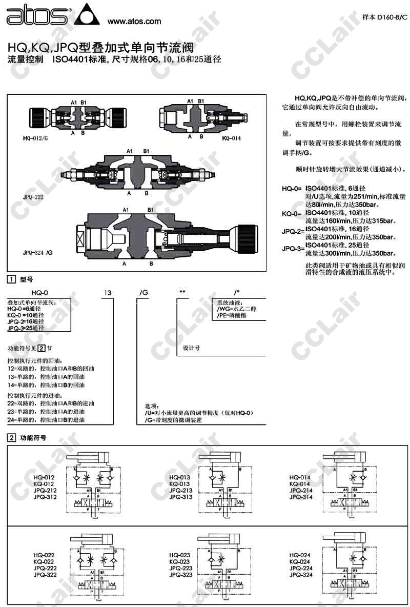 詳細信息 JPQ-212,JPQ-213,JPQ-214,JPQ-222,JPQ-223,JPQ-224,JPQ-224/G,阿托斯ATOS疊加式單向節(jié)流閥