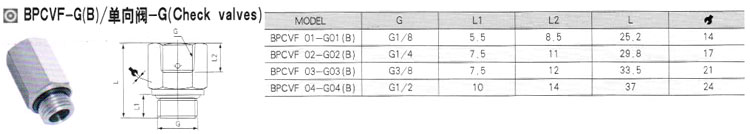 BPCVF01-G01(B),BPCVF02-G02(B),BPCVF03-G03(B),BPCVF04-G04(B),單向閥