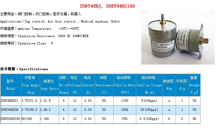 詳細(xì)信息 25BY48HJ21,25BY48HJ49,26BY04HJ180,精密減速步進(jìn)電機(jī)