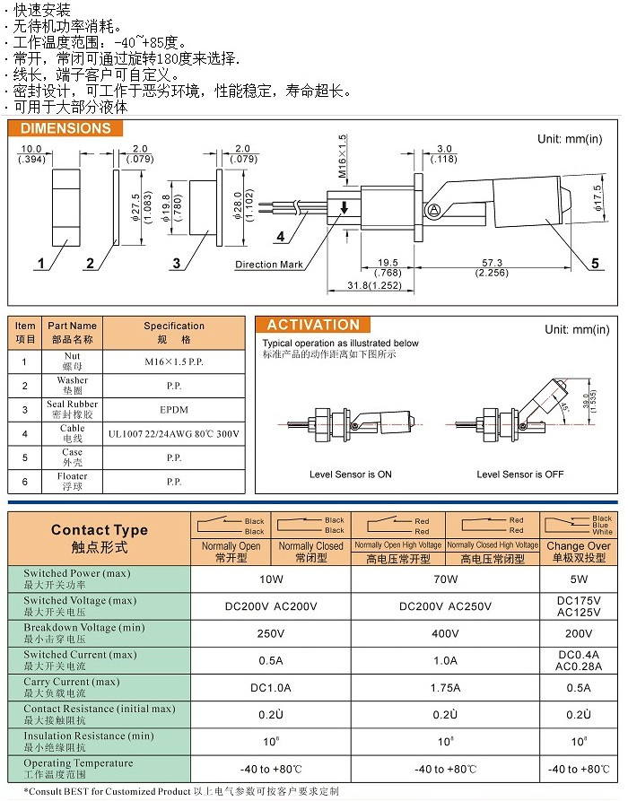 ·靈敏度,線長,端子客戶可自定義。