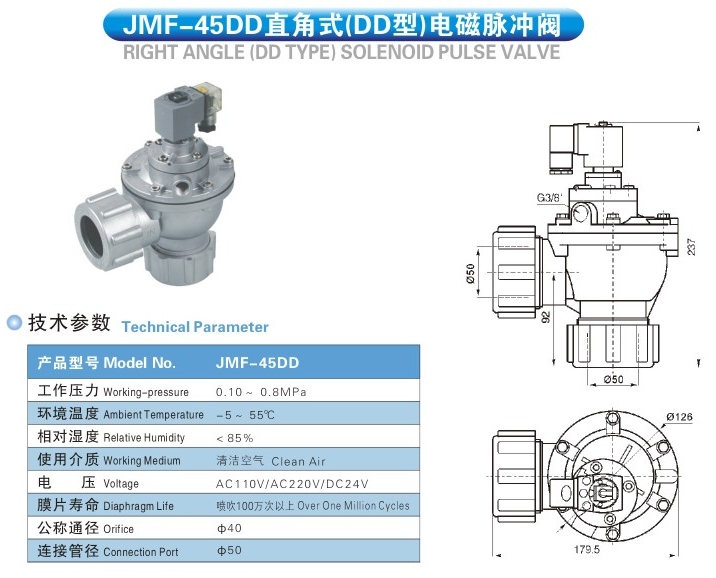 產(chǎn)品: 瀏覽次數(shù):843JMF-45DD,直角式電磁脈沖閥
