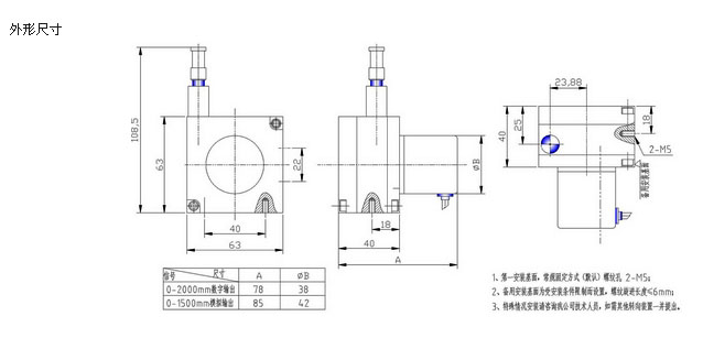 該傳感器屬于微型拉線(繩)位移傳感器,用來(lái)記錄測(cè)量長(zhǎng)度0~2000mm的線性距離、模擬量型和數(shù)字量型輸出,標(biāo)準(zhǔn)化接口,可以堅(jiān)固耐用特別適合短距離,高分辨率的場(chǎng)合,主要特點(diǎn):安裝方便,設(shè)有備用安裝基準(zhǔn)面,根據(jù)需要多種選擇;安裝空間小,安裝難度低;無(wú)需導(dǎo)向。機(jī)械公差不影響測(cè)量精度;廣泛應(yīng)用于直線導(dǎo)軌系統(tǒng),液壓氣缸系統(tǒng)、伸縮系統(tǒng),倉(cāng)儲(chǔ)位置定位,壓力機(jī)械。造紙機(jī)械,紡織機(jī)械、金屬板材機(jī)械、印刷機(jī)械、水平控制儀、建筑機(jī)械等相關(guān)尺寸測(cè)量和位置控制;可外接PLC二次儀表,單片機(jī)等采集系統(tǒng)。
