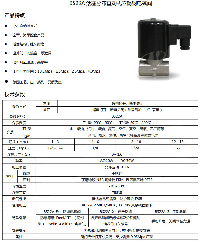 詳細(xì)信息 BS22A-DN1,BS22A-DN3,BS22A-DN4,BS22A-DN6,BS22A-DN8,不銹鋼電磁閥