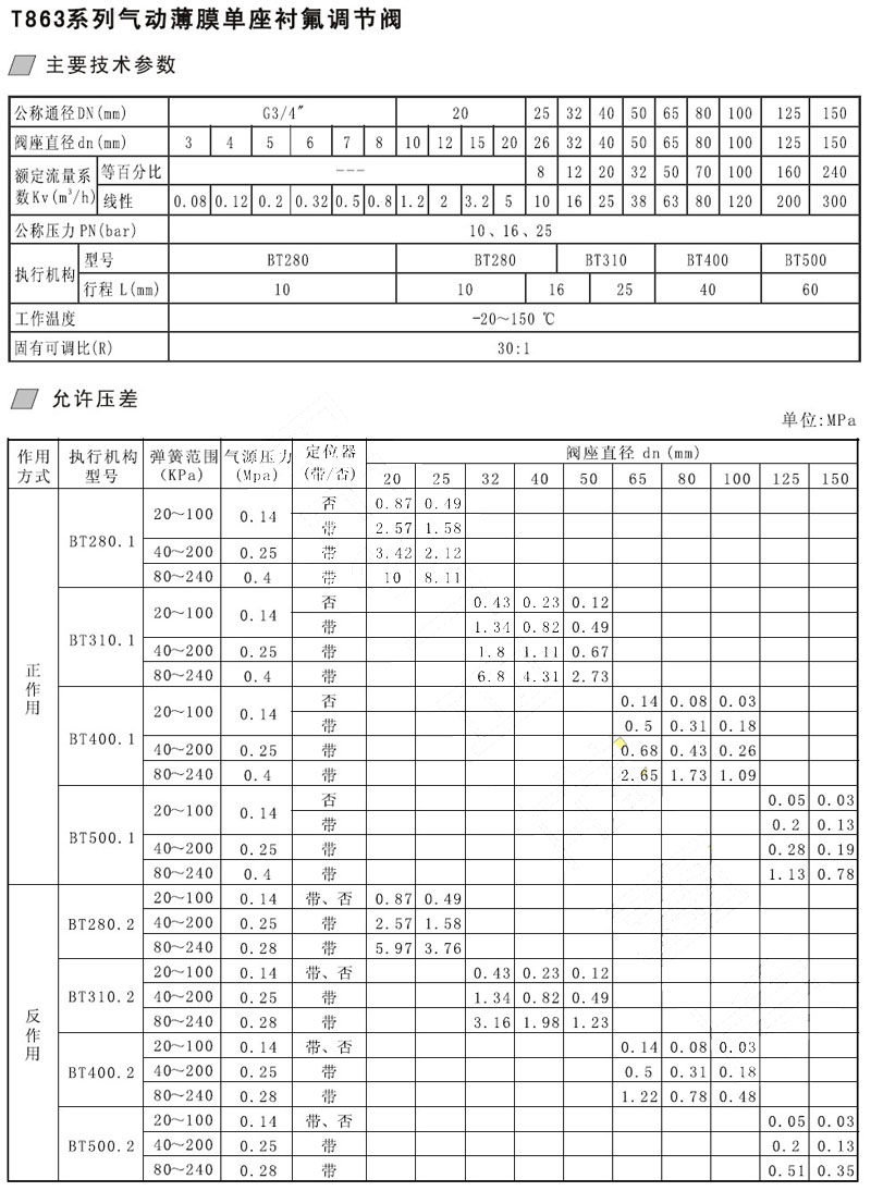 瀏覽次數(shù):730T863-10C-DN20,T863-16C-DN32,T863-25C-DN40,氣動薄膜單座襯氟調(diào)節(jié)閥 |