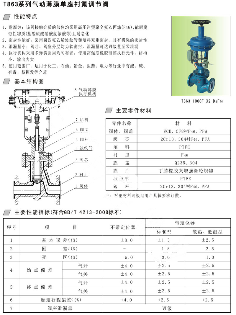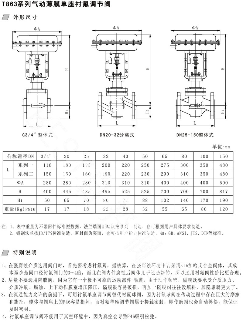T863-10C-DN20,T863-16C-DN32,T863-25C-DN40,氣動薄膜單座襯氟調(diào)節(jié)閥