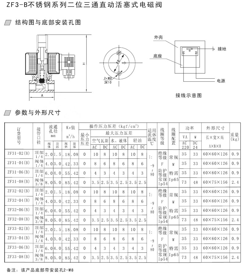 詳細(xì)信息 ZF31-02,ZF31-04,ZF32-02,ZF32-04,ZF33-06,ZF33-08,直動(dòng)活塞式電磁閥