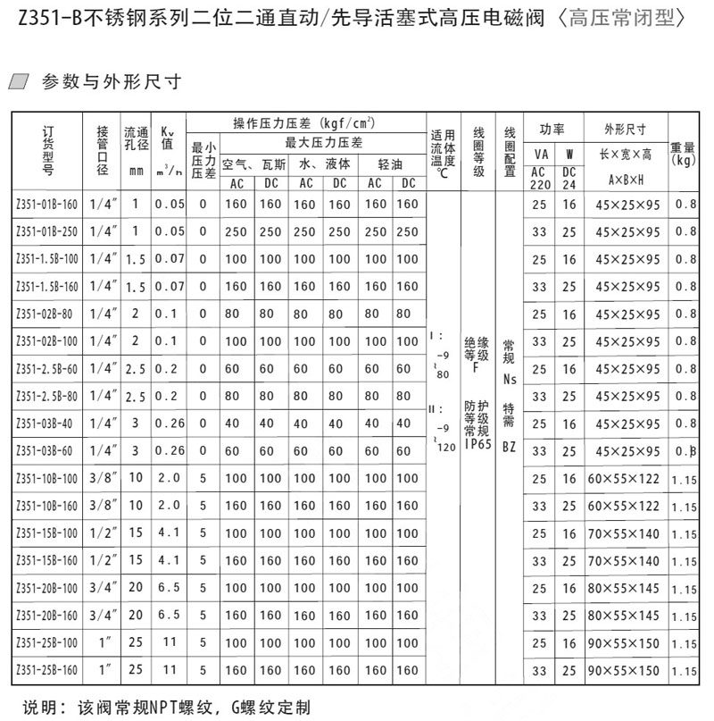 Z531-01B-160,Z531-1.5B-100,Z531-02B-80,Z531-03B-40,Z531-10B-100,高壓活塞式電磁閥