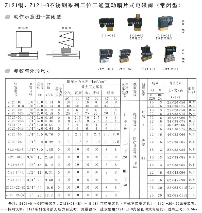 Z121-01,Z121-02,Z121-03,Z121-04,Z121-05,Z121-06,Z121-08,直動活塞式電磁閥