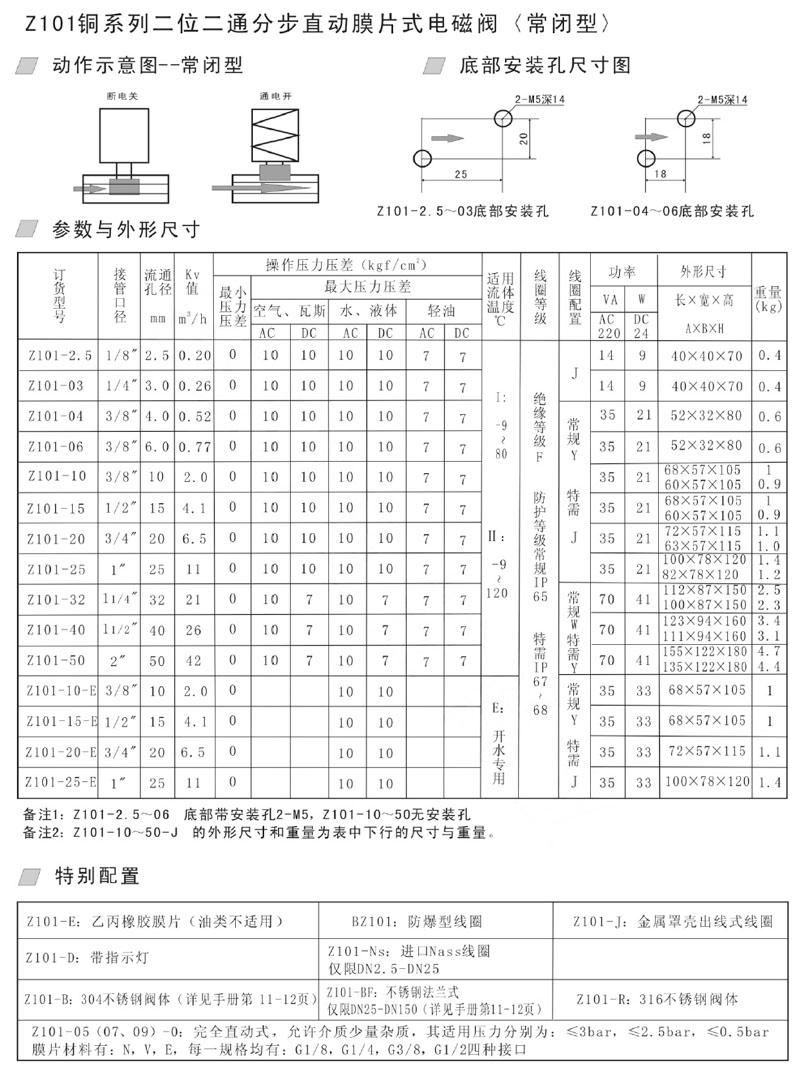 Z101-2.5,Z101-03,Z101-04,Z101-06,Z101-10,Z101-15,Z101-20,分步直動(dòng)膜片式電磁閥