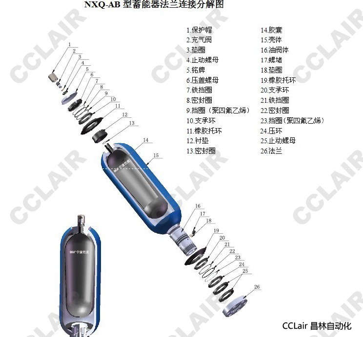 七、囊式蓄能器分解圖(國(guó)家標(biāo)準(zhǔn))