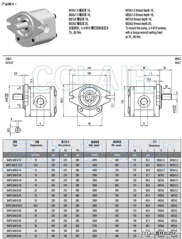 BAP2.5A0-D-10,BAP2.5A0-D-12.5,BAP2.5A0-D-14,齒輪泵