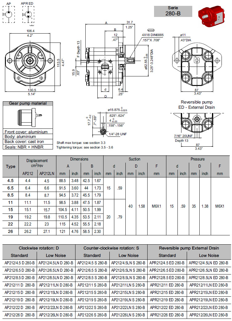 AP212/4.5-D-280-B,AP212/6.5-D-280-B,AP212/8.5-D-280-B,AP212/11-D-280-B,