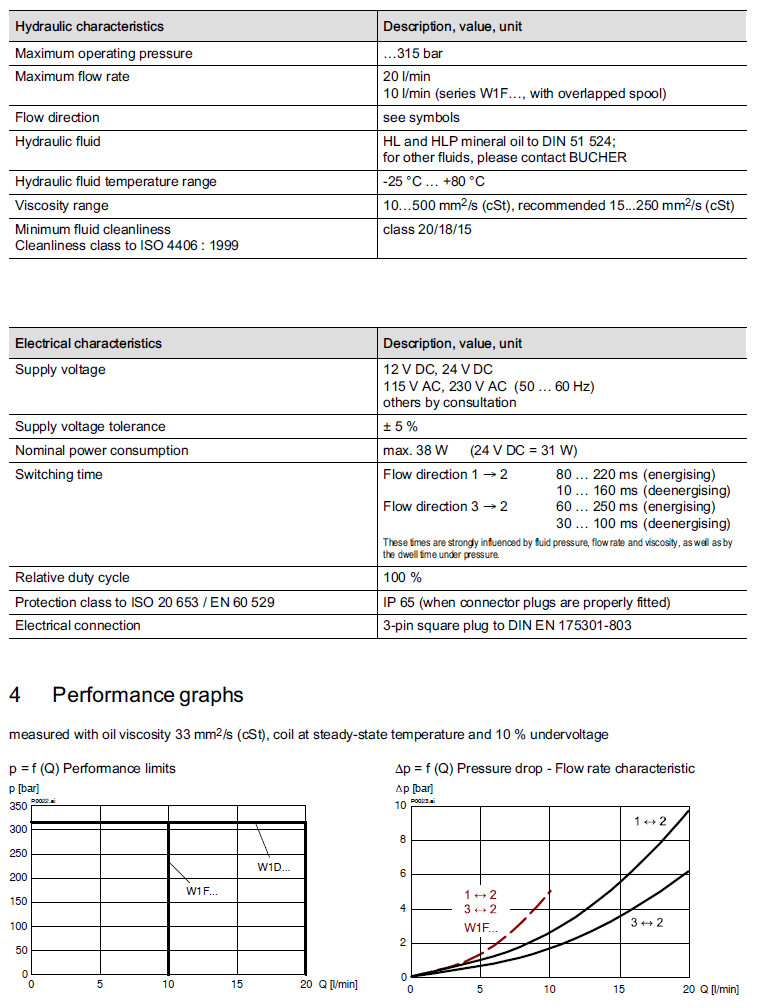 詳細(xì)信息 W1DBA1-24VDC,W1DCA1-24VDC,W1DDA1-24VDC,W1DEA1-24VDC,W1FBA1-24VDC,Bucher方向閥