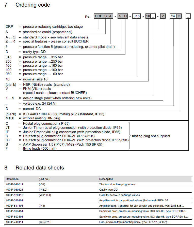 詳細(xì)信息 DRPSA-5D-100,DRPSA-5D-060,DRPSA-5D-315,DRPSA-5D-250,DRPSA-5D-160,Bucher減壓閥