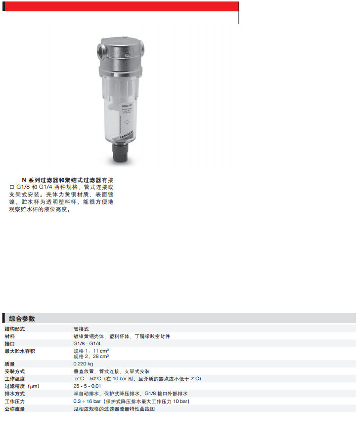 瀏覽次數(shù):779N108-F00,N104-F04,N208-F05,N204-F08,camozzi過濾器和聚結式過濾器 |