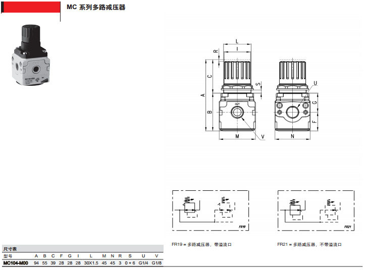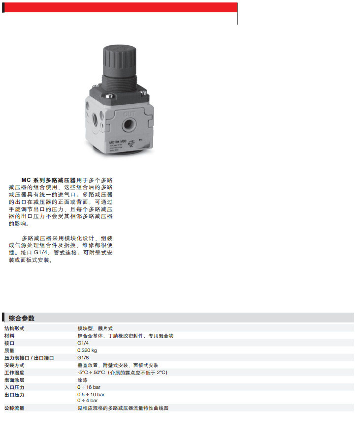 MC104-M00,MC104-M01,MC104-M11,MC104-M25,MC104-M70,camozzi多路減壓器
