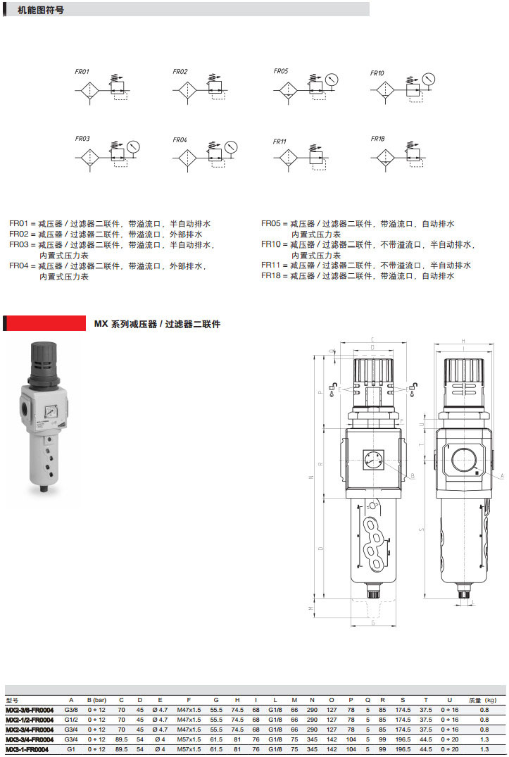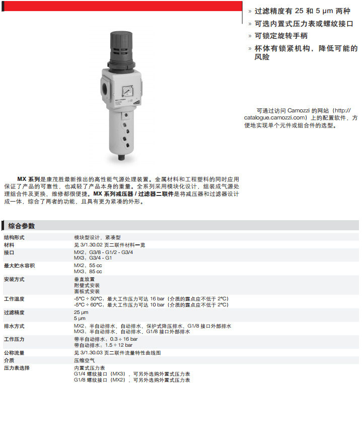 MX2-3/8-FR0004,MX2-1/2-FR0300,MX3-3/4-FR1044,MX3-1-FR1872,camozzi減壓器