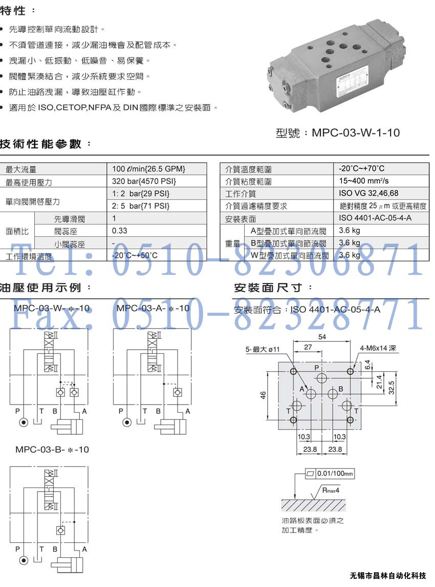 MPC-03-A-2-10,MPC-03-B-1-10,MPC-03-B-2-10,疊加式液控單向閥