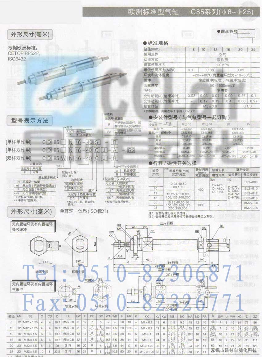 詳細信息 C85Y20-50S,C85Y20-80S,C85Y20-100S,C85Y20-125S,標準型氣缸,生產(chǎn)廠家,價格