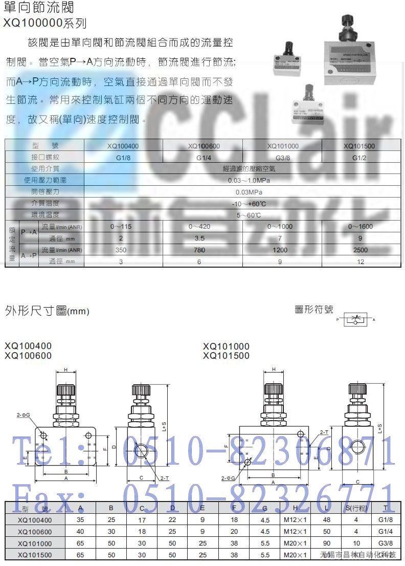 XQ100400,XQ100600,XQ101000,XQ101500,單向節(jié)流閥,生產(chǎn)廠家,價(jià)格