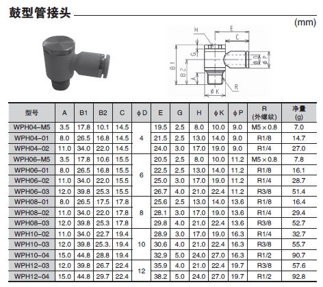 詳細信息 WPH04-M5,WPH04-01,WPH04-02,WPH06-M5,WPH06-01,WPH06-02,WPH06-03,WPH08-01,鼓型管接頭