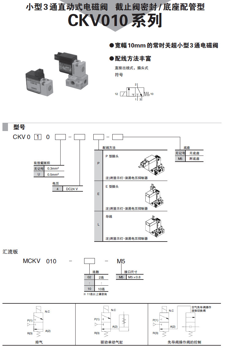 CKV010-4P,CKV010-4E,CKV010-4L,CKV010U-4P,CKV010U-4E,CKV010U-4L,小型3通直動(dòng)式電磁閥