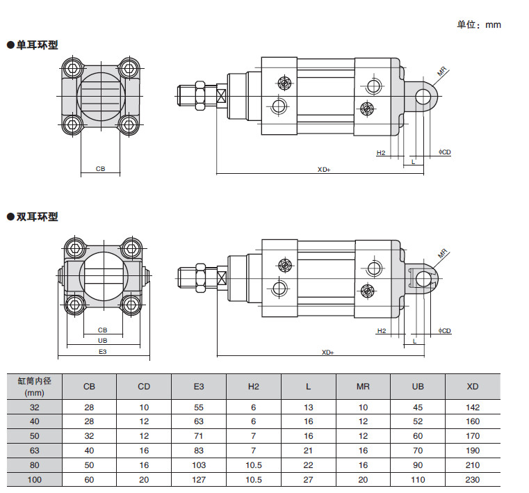 EUZNCF-32-25,EUZNCF-32-40,EUZNCF-32-50,EUZNCF-32-80,EUZNCF-32-100,EUZNCF-32-125,標準氣缸