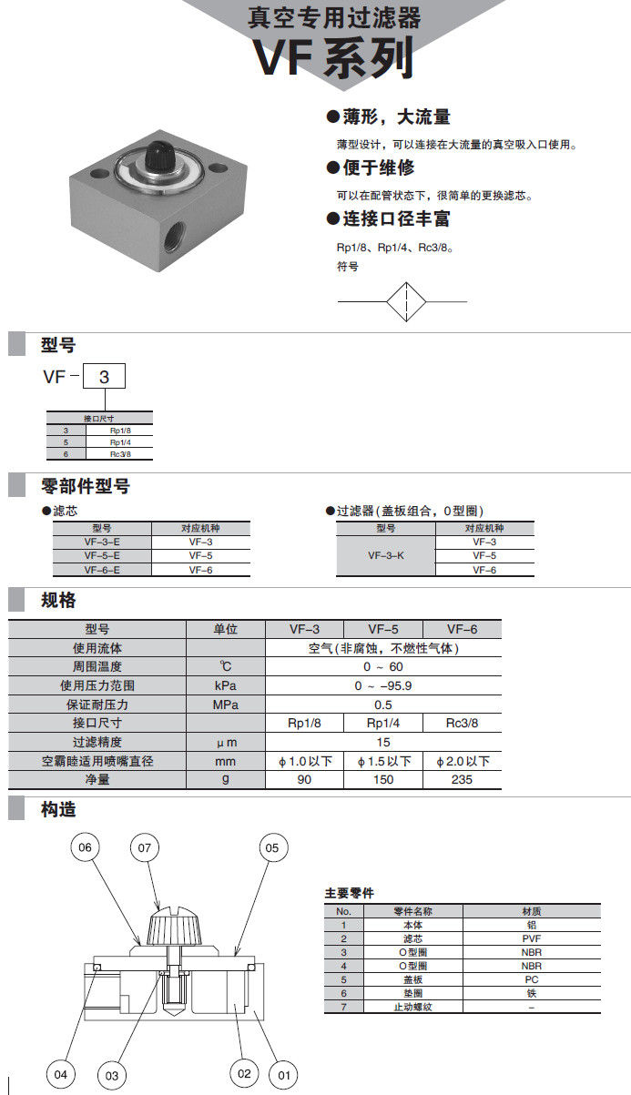 詳細(xì)信息 VF-3,VF-5,VF-6,過濾器