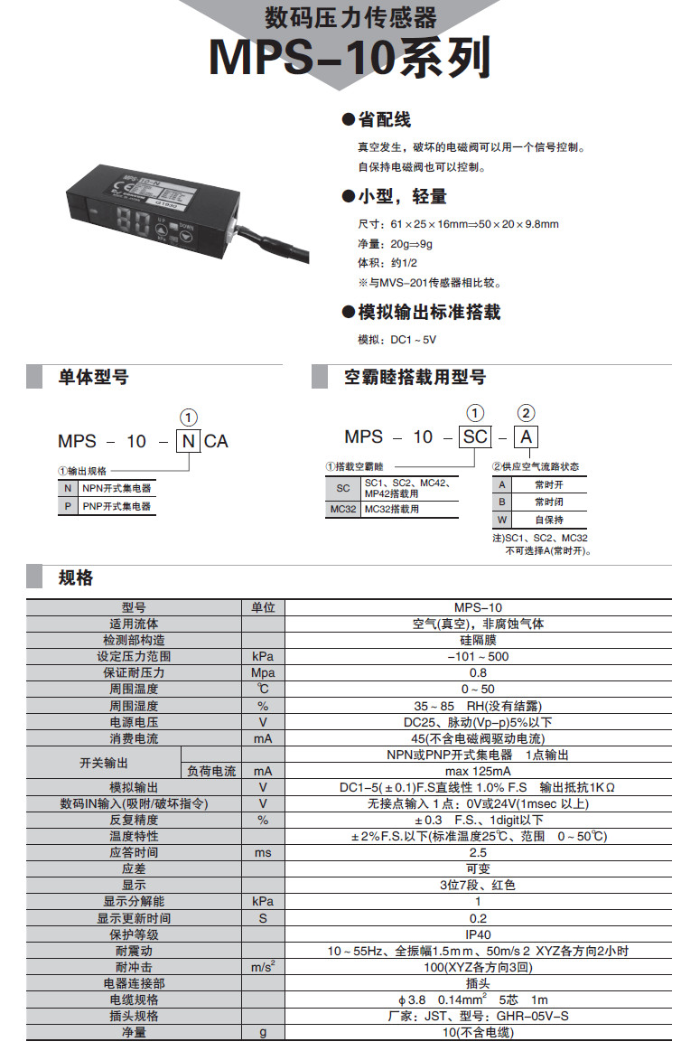 MPS-10-NCA,MPS-10-PCA,數(shù)碼壓力傳感器