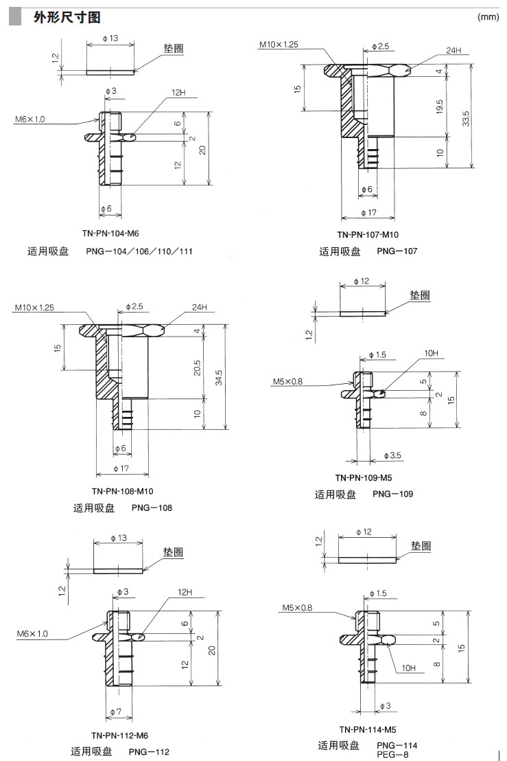 TN-PC,TN-PE,TN-PF,TN-PH,TN-PK,TN-PKM,TN-PN,TN-PR,止動(dòng)螺紋