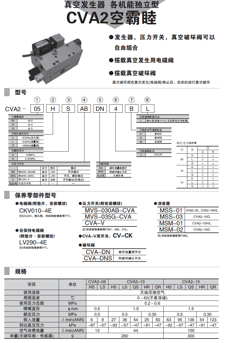 CVA2-05-H,CVA2-05-L,CVA2-10-H,CVA2-10-L,CVA2-15-H,CVA2-15-Q,真空發(fā)生器