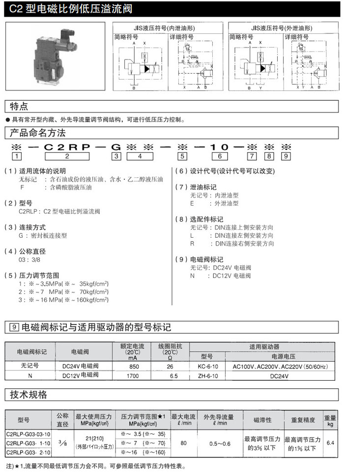 C2RLP-G03-3-10,C2RLP-G03-1-10,C2RLP-G03-2-10,DAIKIN電磁比例低壓溢流閥