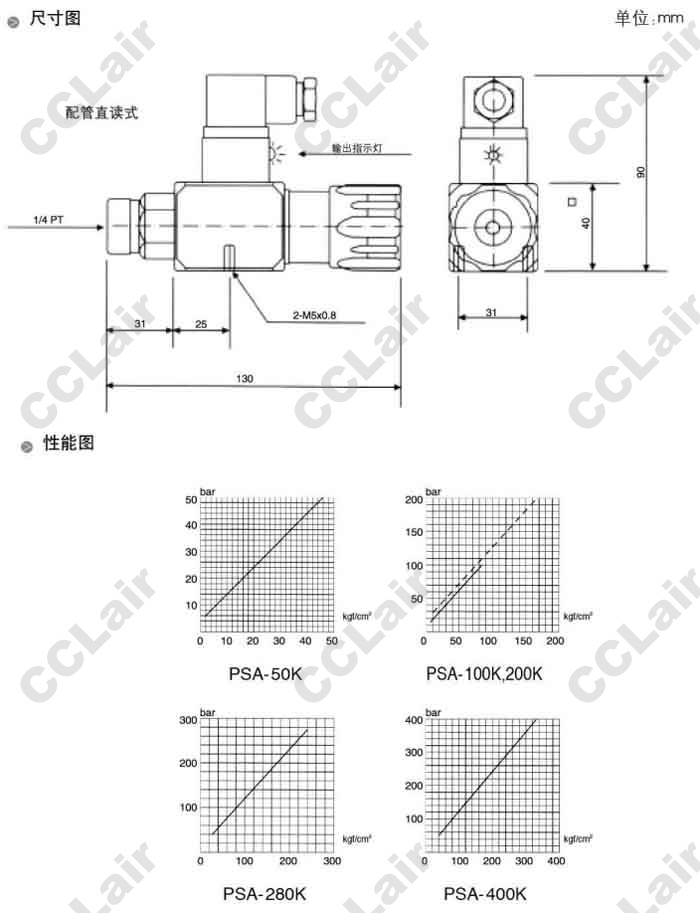 PSA-50K-21B,PSA-100K-21B,PSA-200K-21B,PSA-280K-21B,PSA-400K-21B,油電壓力開關(guān)