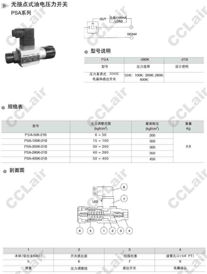 PSA-50K-21B,PSA-100K-21B,PSA-200K-21B,PSA-280K-21B,PSA-400K-21B,油電壓力開關(guān),無(wú)錫昌林
