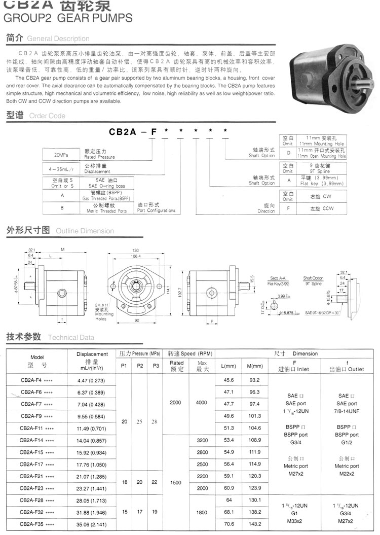 CB2A-F4,CB2A-F6,CB2A-F7,CB2A-F9,CB2A-F11,CB2A-F14,CB2A-F17,CB2A-F28,CB2A-F32,齒輪泵