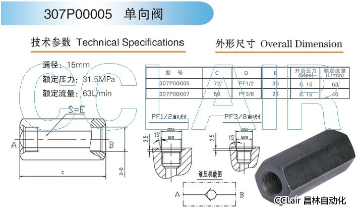 詳細(xì)信息 307P00005,307P00007,單向閥