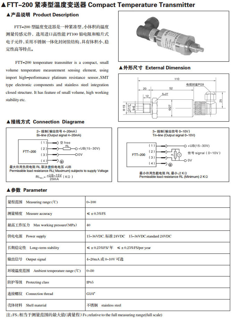 您當(dāng)前的位置:首頁 » 產(chǎn)品&解決方案 » FTT-200,緊湊型溫度變送器