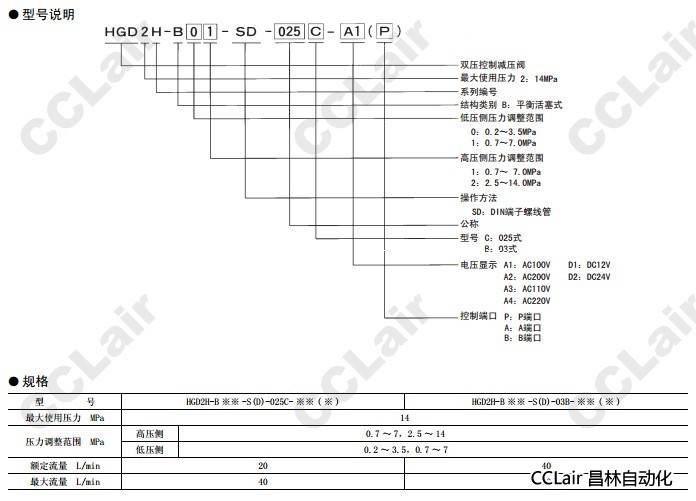HGD2H-B01,HGD2H-B11,HGD2H-B02,HGD2H-B12,HGD2H-B01-SD-025C-A1(P),HGD2H-B02-SD-025C-A2(P),雙壓控制減壓閥