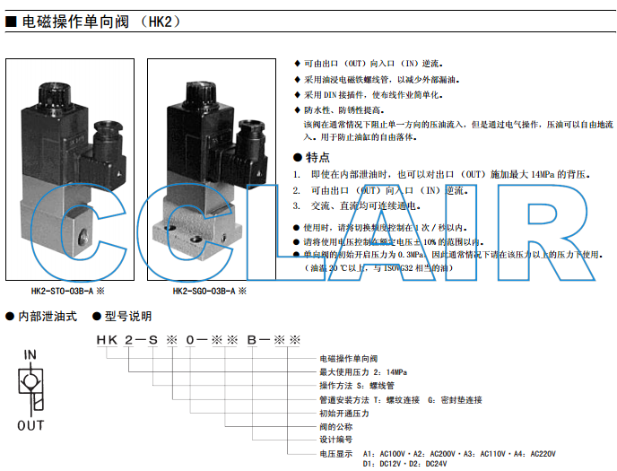 詳細(xì)信息 HK2-STO,HK2-SGO,HK2-STO-02B-A1,HK2-STO-02B-A2,HK2-STO-02B-A3,電磁操作單向閥