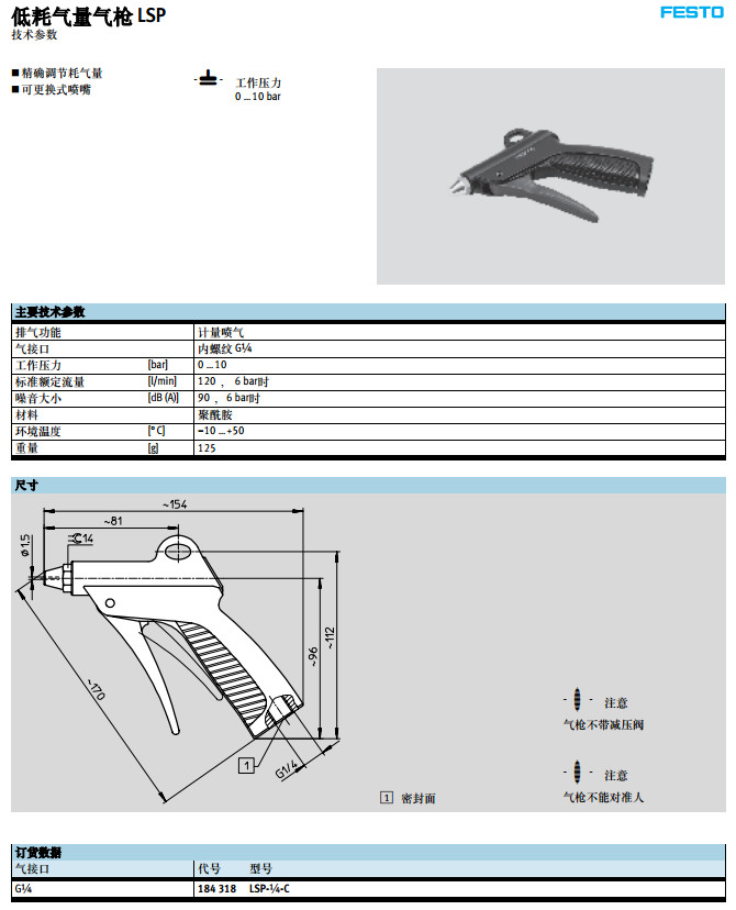 詳細(xì)信息 LSP-1/4-C,festo低耗氣量氣槍