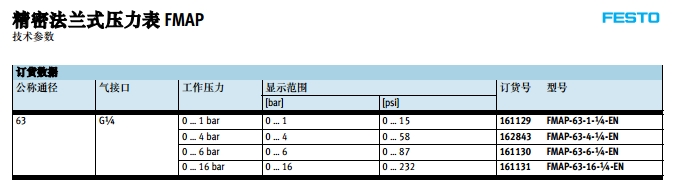 詳細(xì)信息 FMAP-63-1,FMAP-63-4,FMAP-63-6,FMAP-63-16,festo法蘭式壓力表
