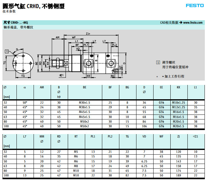 CRHD-32,CRHD-40,CRHD-50,CRHD-63,CRHD-80,CRHD-100,festo圓形氣缸 |