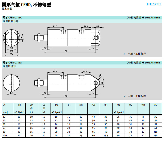 CRHD-32,CRHD-40,CRHD-50,CRHD-63,CRHD-80,CRHD-100,festo圓形氣缸