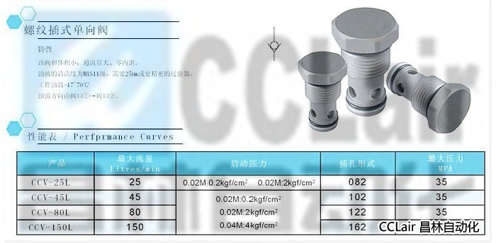 CCV-25L,CCV-40L,CCV-80L,CCV-150L,螺紋插式單向閥