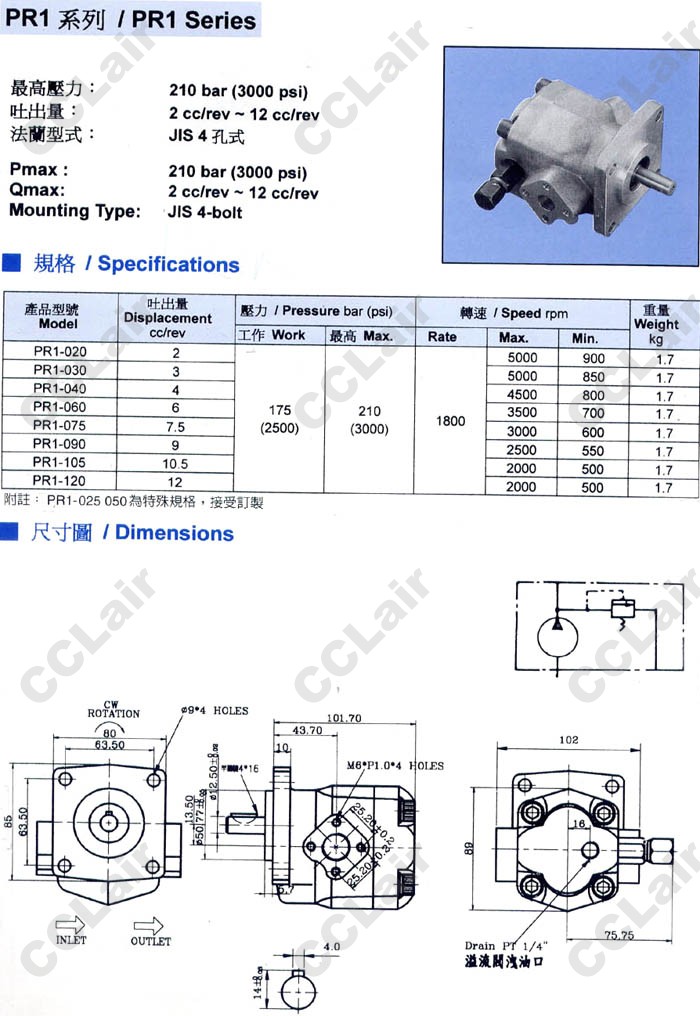 PR1-020,PR1-030,PR1-040,PR1-060,PR1-075,PR1-090,PR1-105,PR1-120,齒輪泵